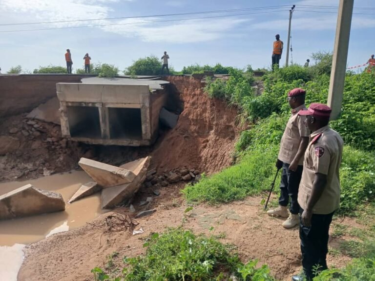 The Federal Road Safety Corps (FRSC) has issued traveled alert to the motoring public of the collapse of a bridge along the Katsina–Batsari route, a few meters after Salbak Filling Station, near Shagari Lowcost, Katsina State following a heavy downpour on Saturday night.