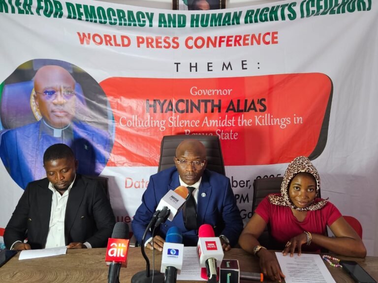 The Center for Democracy and Human Rights (CEDEHUR) has expressed worry over the worsening security and administrative situation in Benue State under Governor Hyacinth Alia.