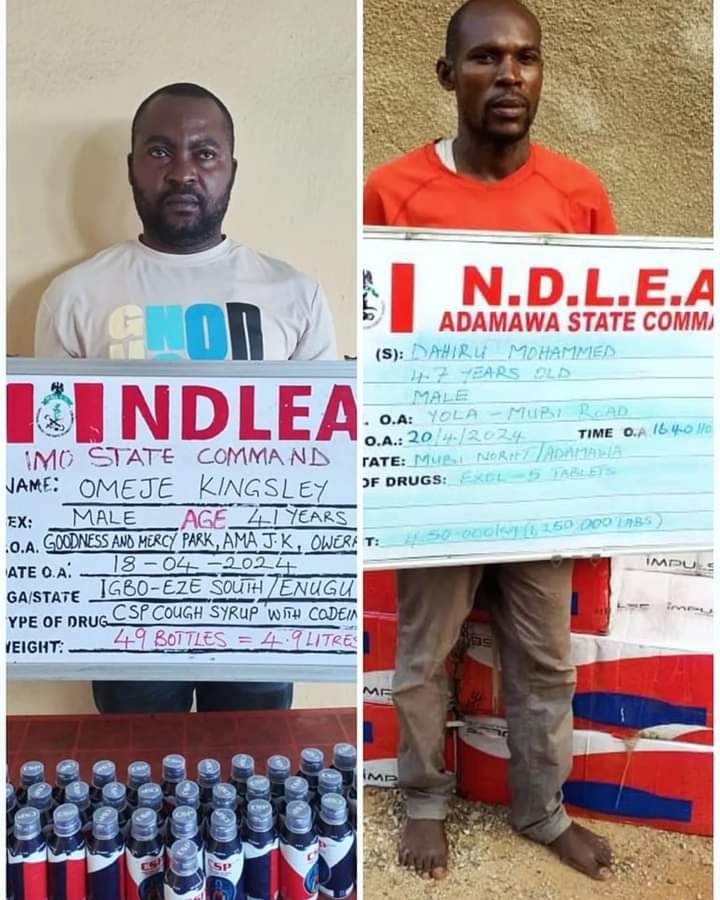 Babafemi added that the operatives had earlier intercepted along Ngurore -Yola road a J5 bus marked AAA790XV loaded with motor spare parts from Onitsha, Anambra State, with consignments of Codeine Syrup and Tramadol concealed in-between the motor parts.