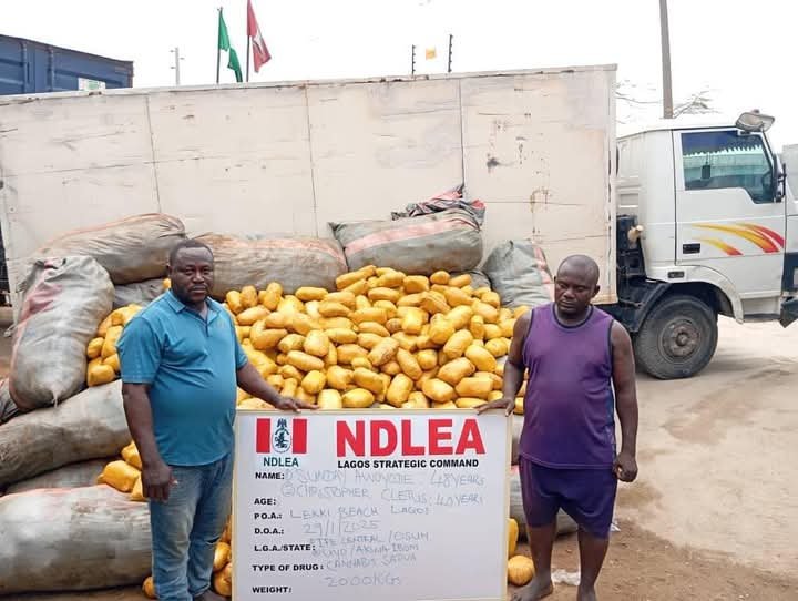 Operatives of the National Drug Law Enforcement Agency last Wednesday intercepted a consignment of 2,000 kilograms of Ghanaian Loud, a strain of cannabis produced in Ghana, at Lekki beach, Lagos.