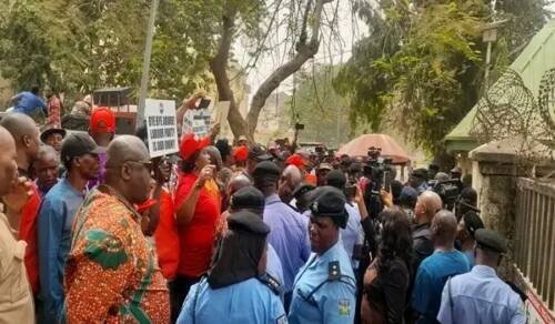 The Nigeria Labour Congress (NLC) Wednesday besieged the national secretariat of the Labour Party in Abuja to protest against the national convention planned for end of this month.
