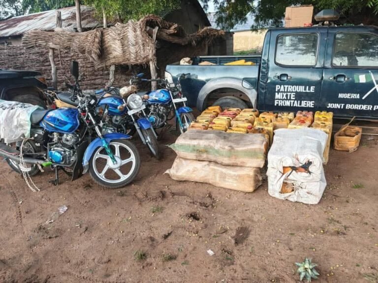 Hundeyin added: “Similarly, along a bush path linking Nigeria with the Benin Republic, three motorcycles laden with 43 jerrycans of PMS were intercepted, while at Mubi in Adamawa State, Border Patrol personnel impounded a Toyota Starlet conveying 60 jerrycans of PMS en route to Cameroon.