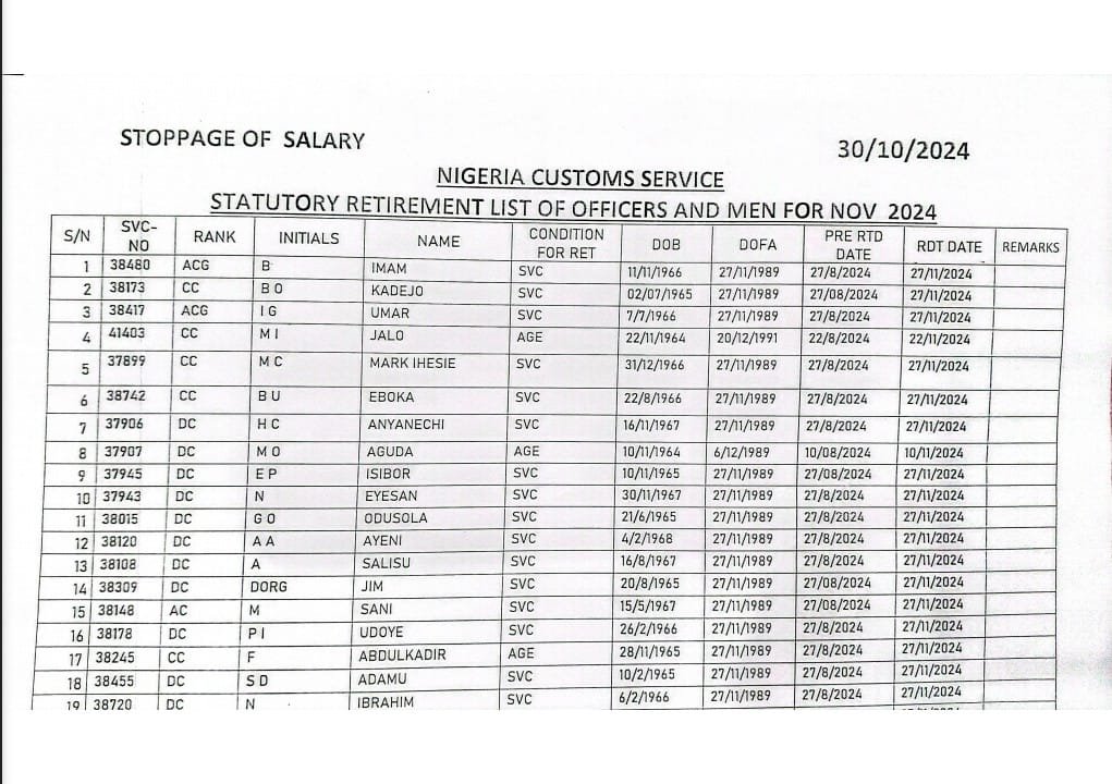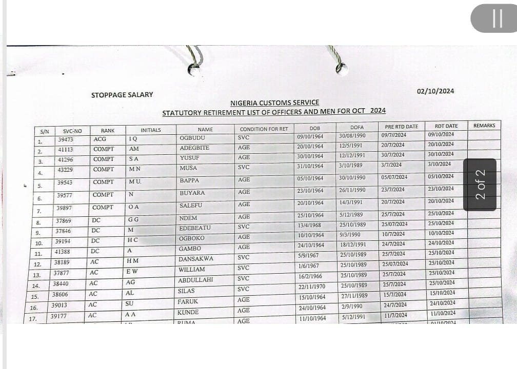 Checks revealed that their continued stay in the office contradicts the NCS Act 2023 and the Civil Service Rules on employment, age and retirement.